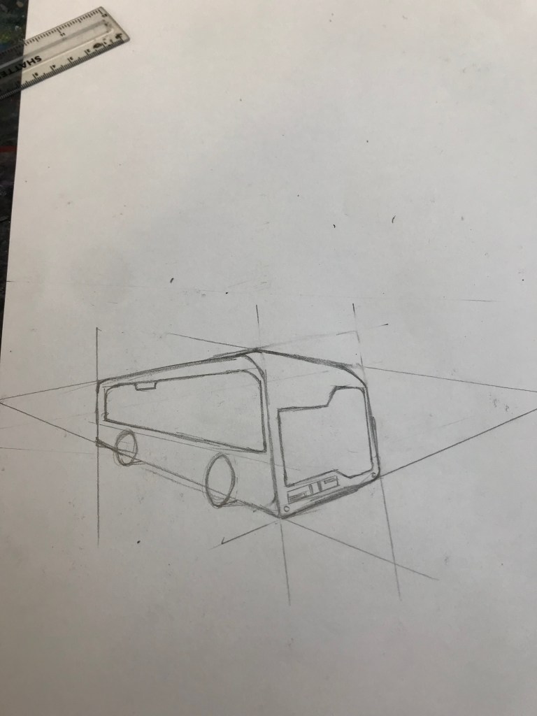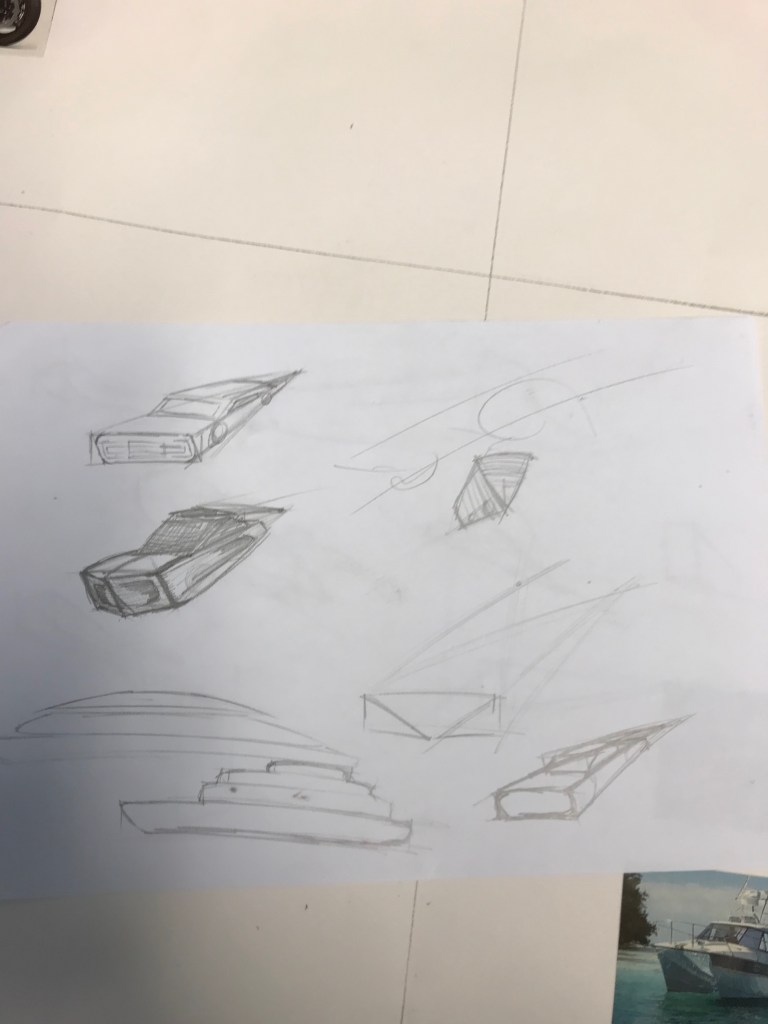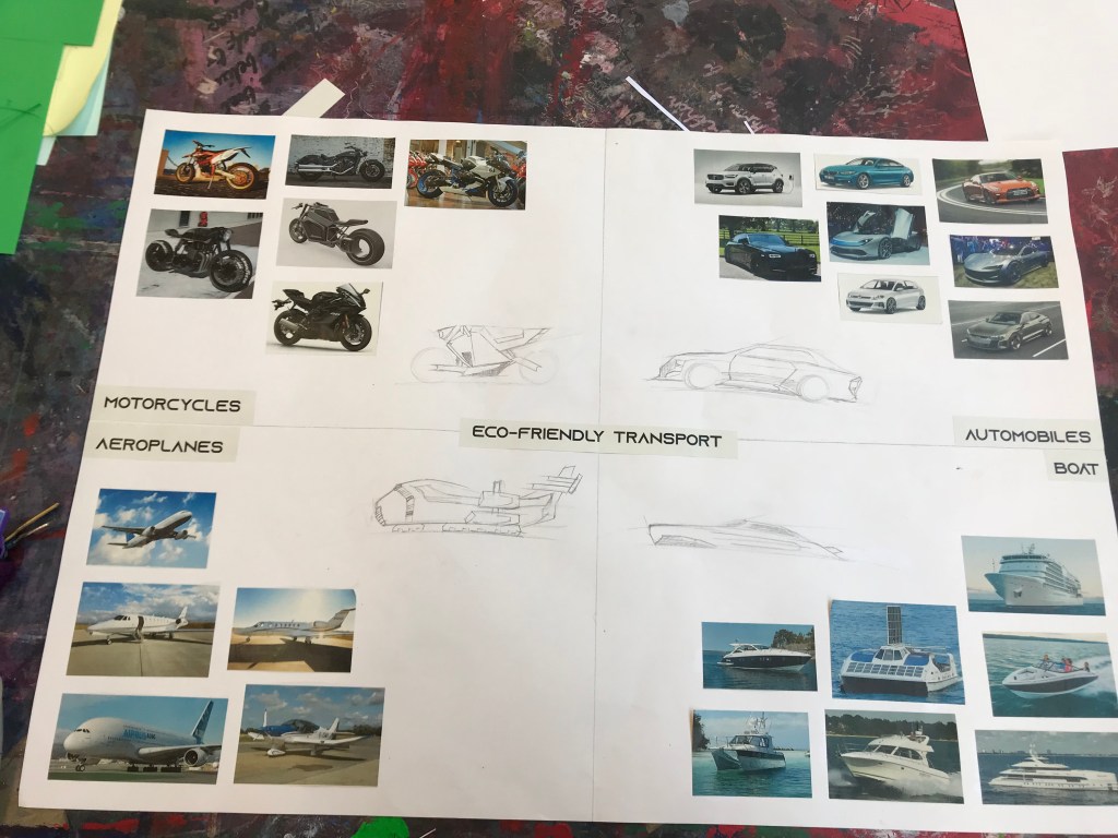 At the start of the week I wanted to finish my mood board. So, I went back to the computer room and printed out all the imaged I collected. They were of Cars, Boats, Motorcycles and Aeroplanes. I split the page in four and arranged the pictures in the way I wanted to. When I was happy with the arrangement of the images, I stuck them down. As I could see all the types of transport, I draw quick sketches of them. I had also practiced my perspective drawing skills. I could already draw basic shapes in perspective. However, drawing vehicles was difficult for me as I hadn’t done it before.