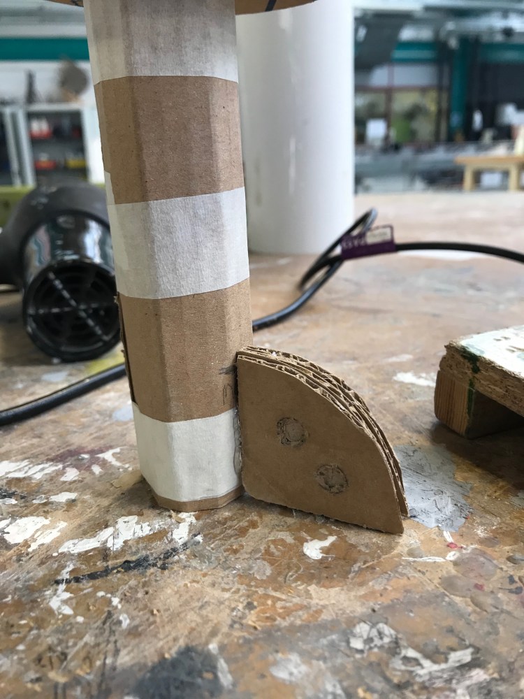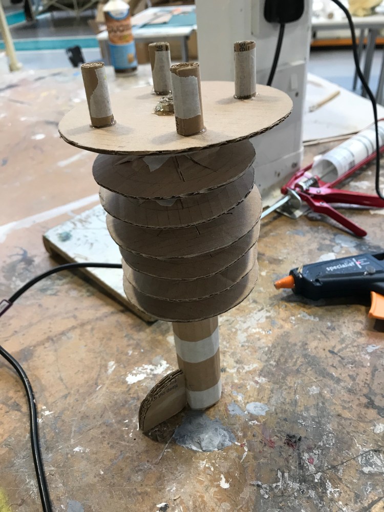 After completing this model, I found that cardboard is very useful in creating this experiment because it showed that the material is very flexible as I used bend parts to secure it on the shock absorber section. As well as this I found that I can create detailed pieces using cardboard because it can come in different thicknesses and colours that some materials may not be able to do. For example, layers cardboard and cut out pieces of the layers to them fill to give the impression of bolts. From this I can see that cardboard can be used to create larger scale models with enough detail for the model to be recognisable. Moving forward I intend to experiment with replicating smaller parts with high amounts of detail.