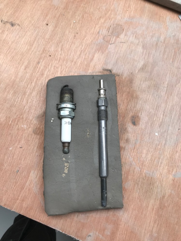 During this week I also wanted to experiment with replicating parts. The reason I would want to replicate part is because the final model would be symmetrical. To do this I experimented with resin casting. The first set was to create a model. I used the spark plugs I took from the garage and pressing them into clay with half of the subject exposed. I then put the clay in a jig and poured melted vinyl over the clay. When it dried I had perfect replica models. It was simple to mix the resin as it was 100ml of resin to 1ml of catalyst. After stirring it I poured this mixture into the model. When it dried it created identical replicas of what I wanted.