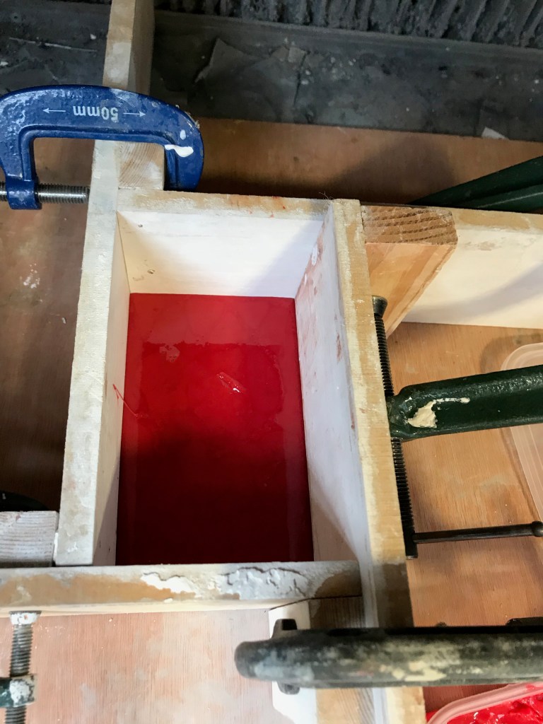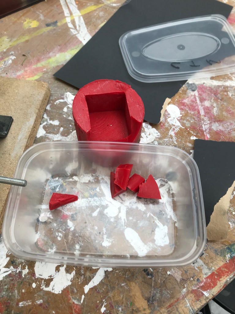 A problem I faced was that it took a longer time than expected to melt the vinyl, to fix this I could cut it in to smaller pieces so that it’d melt faster. Another issue that occurred was that some of the liquid leaked out of the seams of the wooden blocks, to fix this I could use clay to seal the edges of the wall.
